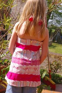 Aus dem letzten Stück Malabo hab ich noch eine Xenia genäht. Die sollte eigentlich verkauft werden. Aber jetzt hat Lilli die Xenia und die Hose wird verkauft. Kind wieder glücklich *freu* (auch wenn es nicht so aussieht...). Das ist die erste Neckholderxenia die ich genäht habe. Ich dachte, die geht schneller als die Schrägbandversion. Ist aber ja gar nicht so!