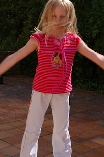 Bei uns heißen gemütliche Hosen "Gammelhosen" und aus einer meiner Lieblings-Gammelhosen, die im Schritt schon etwas kaputt war ist für Lilli einen neue entstanden (nach Oona). Findet sie super, Mama's alte Hose zu tragen *grins* und wurde gleich auf dem Trampolin eingehüpft.