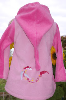 Ich hab auch mal wieder was zum Verkaufen gemacht. Einmal eine Laura aus schokofarbenem Fleece in Gr. 134 und eine Einhornbea aus rosa und rotem Fleece in Gr. 116. Die wandern nachher in Shop und Dawanda.