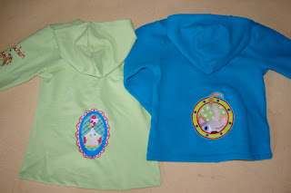 Die grüne ist aus Sommerseweat von meiner lieben Heike. Das grün ist viel schöner aber läßt sich wirklich nicht fotografieren, die türkise ist aus Kuschelsweat von Hilco.
