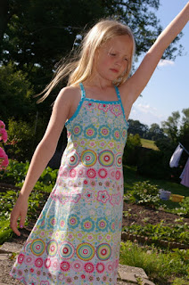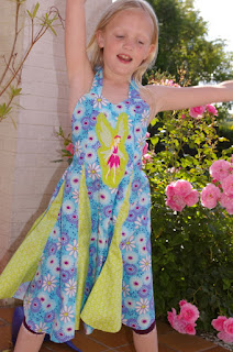 DAS war Lotta's Vorstellung von ihrem Einschulungskleid. Eine ähnliche Roxy hängt bei Lilli im Schrank, die wollte sie aber noch nicht rausrücken. Also hab ich nochmal eine ähnliche genäht. Und Drachen haben ja auch Flügel :-).