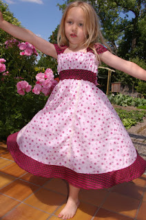 Und für dieses kleine Mäuschen war das Kleid. Ursprünglich ja die Einhorntini, aber die war für das Mädel nicht rosa genug und es war kein "Kleid"! Schön, das die Kids ihre eigenen Vorstellungen haben. Sie hat sich ganz geziehlt den rosa Blümchenstoff rausgegriffen :-). Danke Claudi, das ich das Bild einstellen darf!