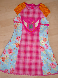 DAS war Lotta's Vorstellung von ihrem Einschulungskleid. Eine ähnliche Roxy hängt bei Lilli im Schrank, die wollte sie aber noch nicht rausrücken. Also hab ich nochmal eine ähnliche genäht. Und Drachen haben ja auch Flügel :-).