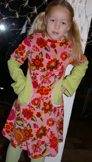 Als Lotta dieses Kleid gesehen hatte war sie sofort verliebt. Zwar nicht aus dem gleichen Nicky aber trotzdem schön bunt, ist jetzt (kaum zu glauben *ggg*) eine Olivia entstanden. DANKE Karin, das ich das Kleid nachnähen durfte!!! Lotta ist total glücklich! Das erste Foto heute Morgen noch ungekämmt....