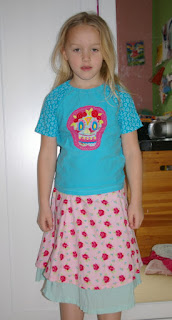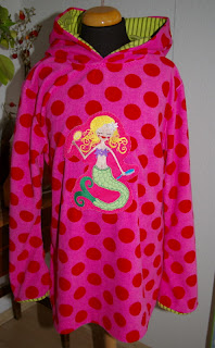 Und dann noch Lotta's Emilia angezogen. Das Seepferdchen-Velours mußte mit drauf und dazu wollte sie noch eine Leggins so wie Lilli's mit Rüsche bzw. Rollsaum. Dafür hat sie den Tukan-Jersey ausgesucht.