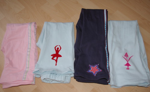 Die Sporthosen sind aus glattem Bündchenstoff von Sanetta, die beiden anderen aus Jersey.