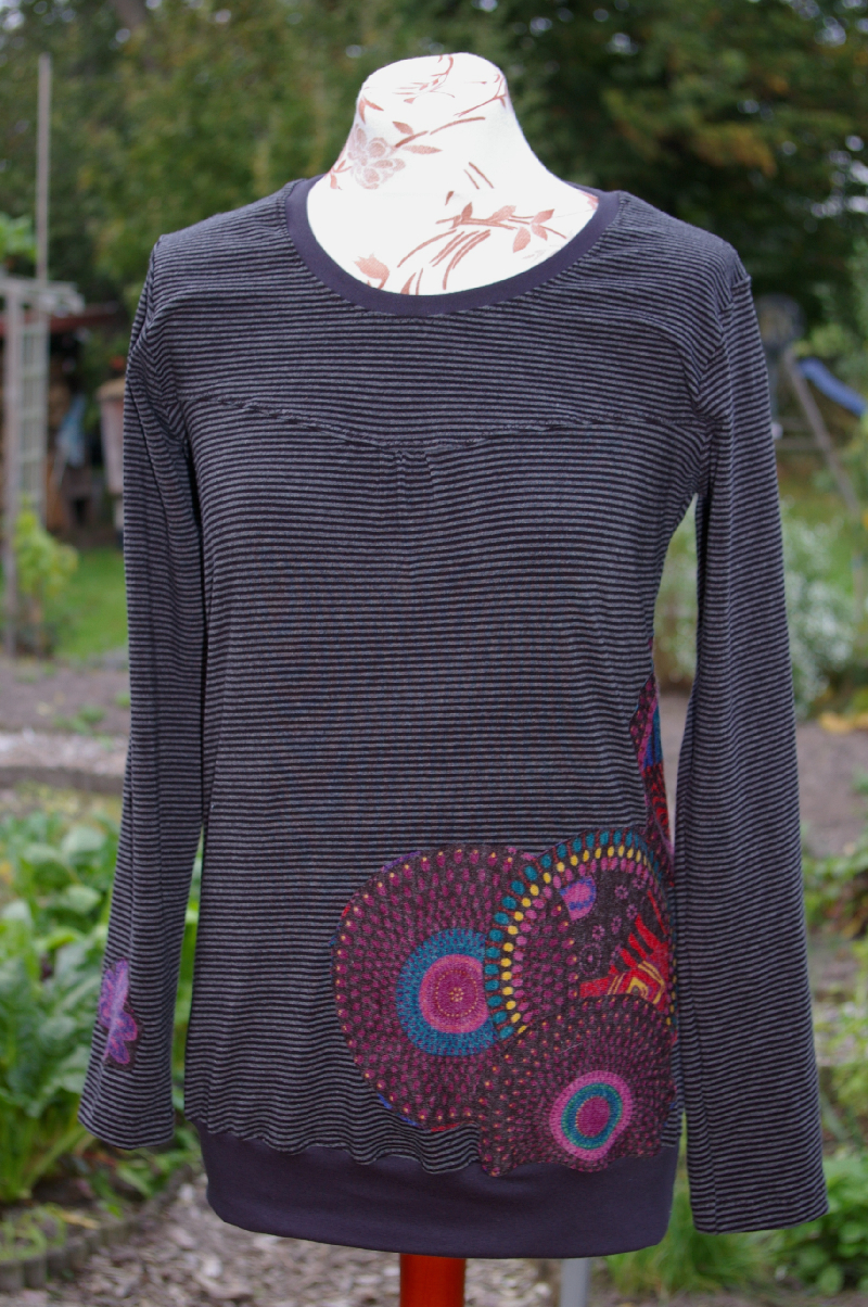 Das Bündchen hatte ich für ein anderes Shirt zugeschnitten aber im Nähwahn einfach hier mit drangesetzt, fiel mir erst hinterher auf aber sitzt und gefällt mir super.