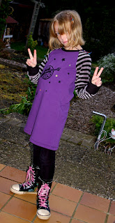 Nr. 2 ganz schlicht aus kuscheligem Interlock von Sanetta, dazu ein Tuch aus genialem Doubleface - Karo (Leggins und Stiefel gehören eigentlich zu Vlieland Nr. 1, war aber zu faul zum Umziehen)