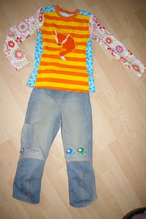 Ach schon wieder so eine schöne Kombi,die Hose finde ich Klasse,wenn sie nicht sitzt nehm ich sie ,aber leider würde Anna ja nicht in Lillis Hosen passen...Das Shirt ist auch supi geworden!Ich streichel mein Püreh noch ein bischen....GLG Bea